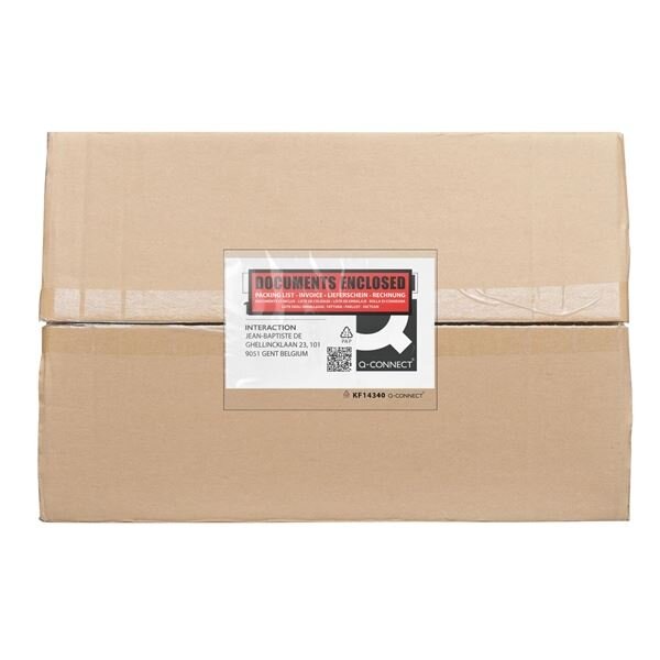 Spolehlivé a kvalitní transparentní plastové kapsy na zásilky značky Q-Connect ve formátu C6 pro profesionály, navržené tak, aby splnily i ty nejnáročnější požadavky; Umožňuje snadnou identifikaci obsahu bez nutnosti otevírání. Ideální pro faktury, dodací listy nebo jiné důležité dokumenty; Na horní části v červeném poli potisk DOCUMENTS ENCLOSED; Pevné lepidlo lepí za všech okolností, odolává vlhkosti, mrazu a vysokým teplotám; Krycí papírová vrstva vyrobena z papíru s certifikací zodpovědného lesního hospodářství; Materiál: čirá LDPE fólie; Tloušťka materiálu: horní strana - 30 mic, spodní strana - 25 mic; Formát: C6; Vnější rozměry (šířka x výška): 165 x 111 mm; Barva: čirá a červená s potiskem; Balení obsahuje 1 000 ks (balení 4x 250 ks)