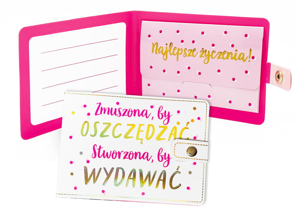 Portfelik tekturowy z kopertką "zmuszona by oszczędzać, stworzona by wydawać" POR-007