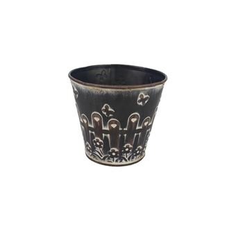 Květináč plechový. Rozměry : průměr 11 cm, výška 10 cm. Barva : hnědá. Materiál : kov. číst celé