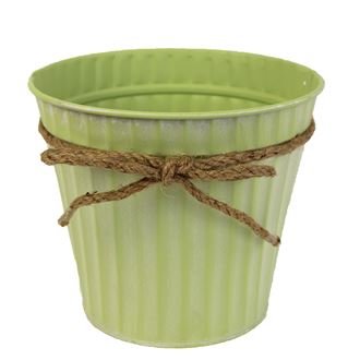Květináč plechový kulatý s mašličkou. Rozměry : průměr 17 cm, výška 14,5 cm. Barva : zelená. Materiál : plech, jutová mašle.