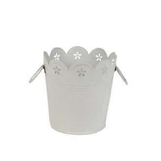 Květináč plechový.Květináč má průměr 10,5 cm, výšku 9 cm.Dno má průměr 8 cm.Barva : bílá.Materiál : plech. číst celé