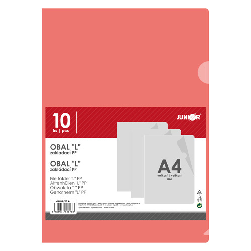 Obal zakládací "L" PP/A4, červený - sada 10 ks