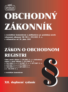 XII. vydanie odbornej publikácie Obchodný zákonník s rozsiahlym komentárom a judikatúrou po novele vykonanej zákonom NR SR č. 193/2011 Z. z. s účinnosťou od 1. septembra 2011. Súčasťou knihy je i úplné znenie Zákona o obchodchnom registri rovnako s podrobným komentárom po poslednej novele. číst celé
