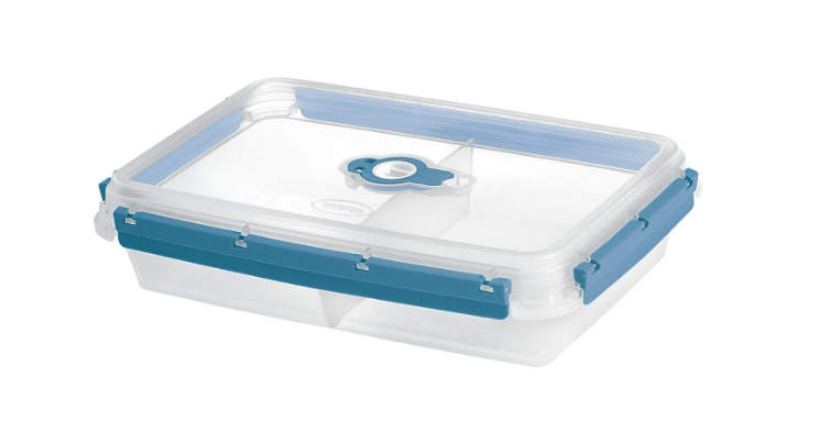 Dóza na potraviny FRESH SYSTEM 2 l obdélník, s ventilem a přepážkou transp/modrá;19.3X28.7XH6.4CM;objem L:2