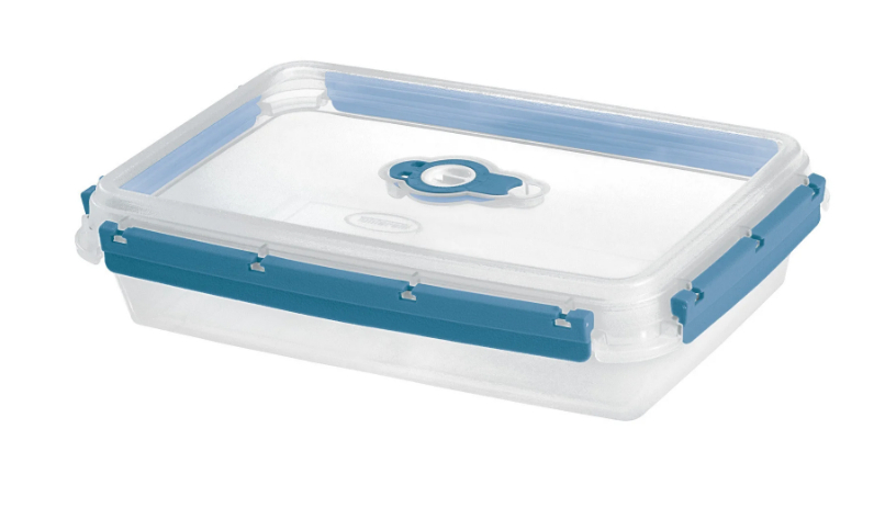 Dóza na potraviny FRESH SYSTEM 2 l obdélník, s ventilem transp/modrá;19.3X28.7XH6.4CM;objem L:2