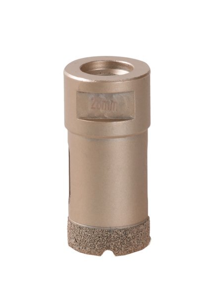 profesionální vykružovací diamantová korunka se závitem M14 - pro úhlové brusky pro "suché" přesné a rychlé vrtání do kamene, dlažby, obkladů, žuly, mramoru a jiných extrémně tvrdých materiálů nejen ve stavebnictví výška vrstvy diamantu 10 mm, dlouhá životnost bez nutnosti použít jakýkoli pomocný nástroj vykroužíte přesný otvor na požadovaném místě doporučený pracovní postup - našroubujte korunku přímo na závit hlavy úhlové brusky, pevně dotáhněte, vykružovat požadovaný otvor začněte pod úhlem 45 °, korunka a rychlost brusky okamžitě zajistí uchycení v požadovaném místě, pomalu při rovnoměrně vytvořeném tlaku narovnejte směr vykružování do svislé polohy, menší průměry 6 - 14 cm je u vrtání do tvrdých dlažeb, mezi jednotlivými vrty, ZCHLADIT - stačí ponořit do sklenice s vodou nebo nechat v otáčkách ochladit vzduchem! Instruktážní video