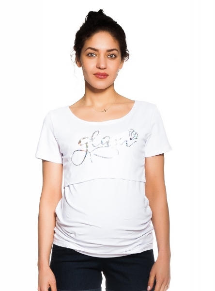 Be MaaMaa Těhotenské/kojicí triko Glam - bílé, vel. XL