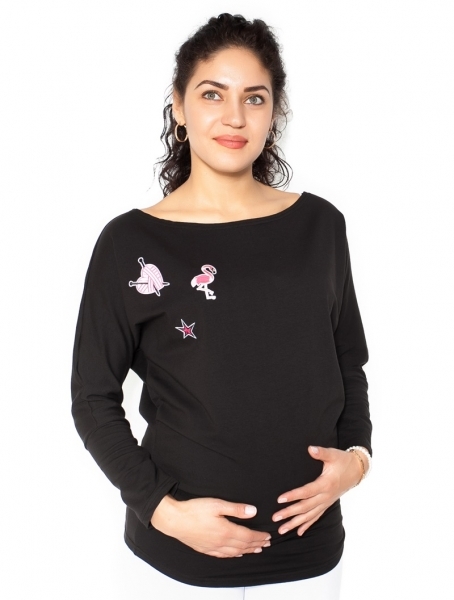 Be MaaMaa Těhotenská mikina, triko s nášivkami - černé - S; S (36)