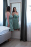 Dámská košilka a domácí šaty na ramínka Moniel Dots mintová je těhotenská, kojící a mateřská zároveň. Je elastická a velmi pohodlná. Dokonale padne každé postavě. Má praktický střih pro pohodlné kojení a nošení ve dne i v noci. Ručně šitá v ČR.