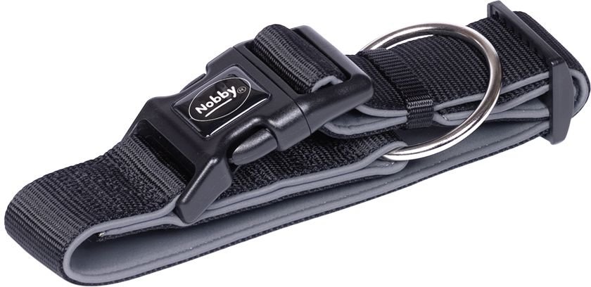 Extra široký obojek Nobby pro psy. Podšitý neoprénovou vrstvou, která je šetrná k srsti psa, ale také rychle schne, když se pes v létě rád koupe. Vrchní nylonový pevný materiál je prošitý se spodní neoprénovou vrstvou. Pozice spony zabraňuje jejímu přetížení. Nastavitelná velikost: 32-45cm Šířka obojku: 38-40mm Barva vrchní strana (nylon): černá Barva spodní strana (neoprén): tmavě šedá