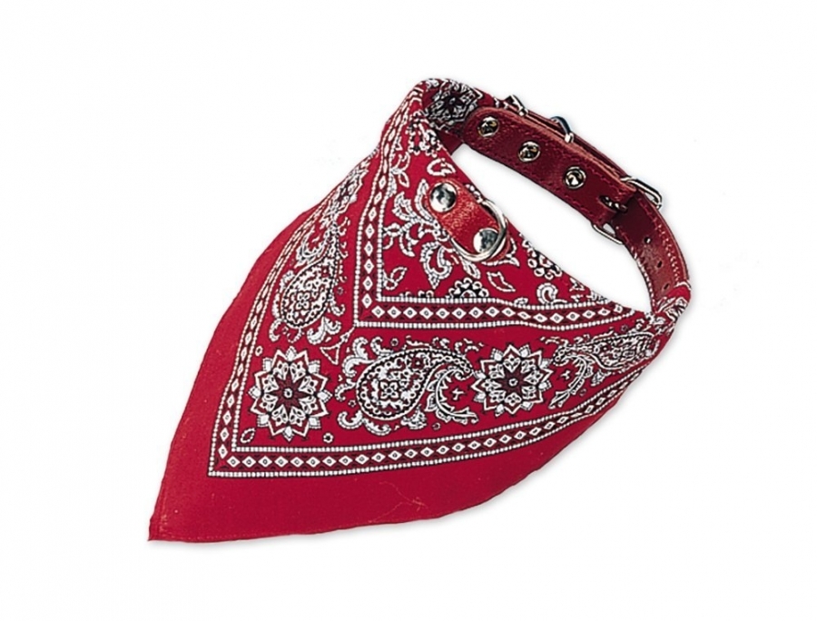 Modní kožený obojek s textilním šátkem. Obojek vyroben z hovězí kůže. Vhodné pro obvod krku 30-41cm. Barva šátku a obojku je červená. číst celé