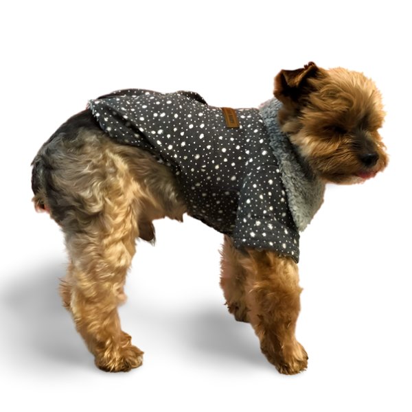Naplánovali jste si výlet do přírody, nebo chcete vyrazit na procházku do parku a zrovna začalo pršet? Lehký elegantní kabát, který Váš pes může nosit od podzimu až do jara. Kabát je ušitý z velice kvalitního nepromokavého materiálu, který se postará o to, aby byl Váš pes v suchu za jakéhokoliv počasí. Kabát má prošívání na vnitřní straně a jednoduché zapínání, takže Váš pes bude připravený raz dva!