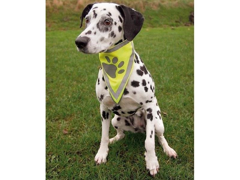 Reflexní šátek pro psy slouží jako pomocník při procházkách v šeru a tmě s Vašim pejskem. Připíná se snadno pomocí suchého zipu na krk přes obojek. Snadno lze prát při teplotě 30C. Velikost L-XL je vhodná pro pejsky s obvodem krku 43 - 60 cm (Rotvailer, Novofunlandský pes, Doga atd.)