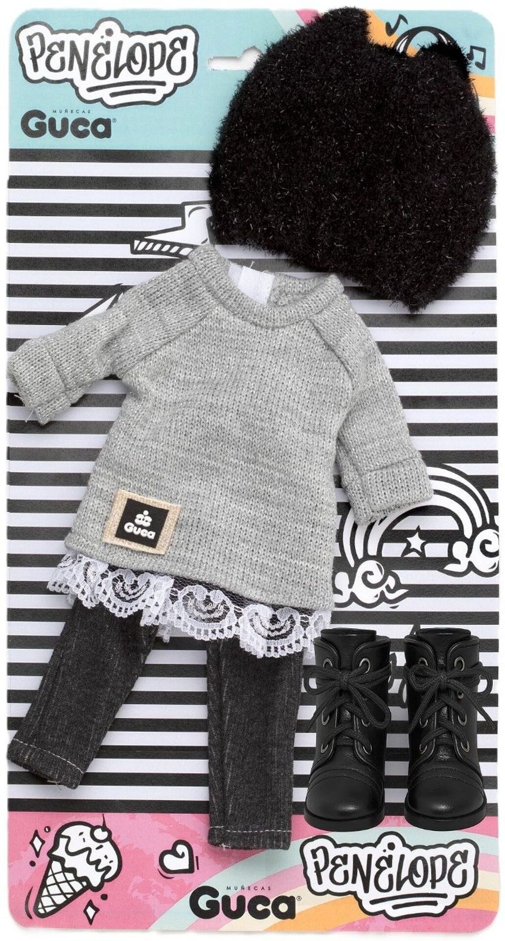 4dílný set: 3 kusy oblečení a botičky pro panenku Penelope velikosti 34 cm. Vyrobeno ručně ve Španělsku, baleno v igelitovém obalu na kartonové podložce. Doporučený věk od 3 let. číst celé