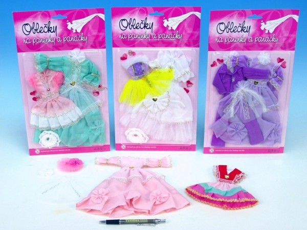 Šaty/Oblečky na panenky 2ks s doplňky mix druhů na kartě 21x30cm