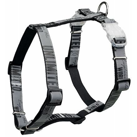 Postroj EXPLORE s blikátkem, černý/reflexní - DOPRODEJ - M-L:hruď:52-75cm/25mm