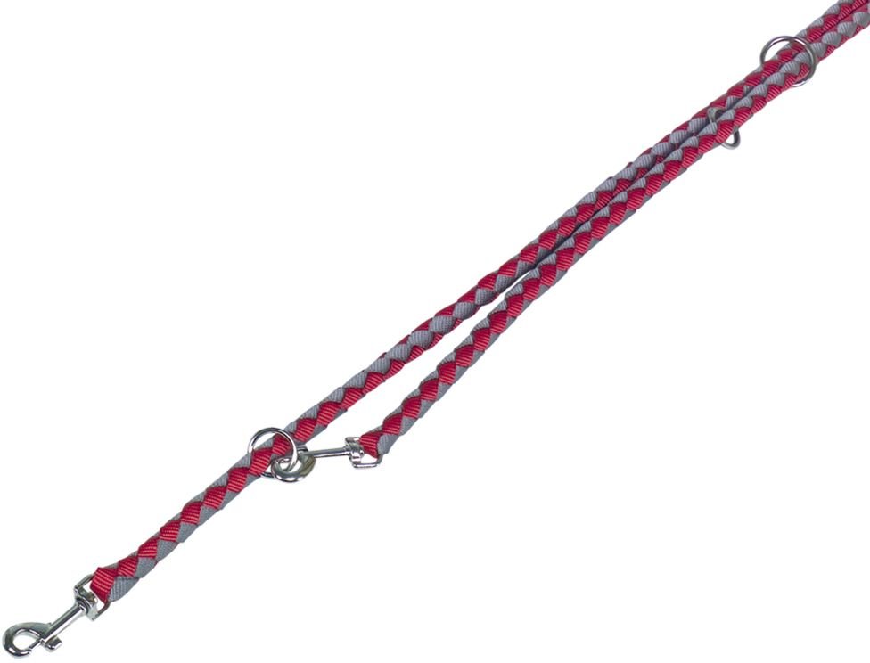 Kulaté vodítko z kvalitního pleteného nylonu nabízí snadnou regulaci délky pro lepší kontrolu. Díky dvěma kovovým karabinám a kovovému kroužku si můžete snadno nastavit vodítko na tři různé délky podle potřeby. Je ideální pro plemena malých a středních psů, poskytuje dostatečnou pevnost a zároveň pohodlný úchop.