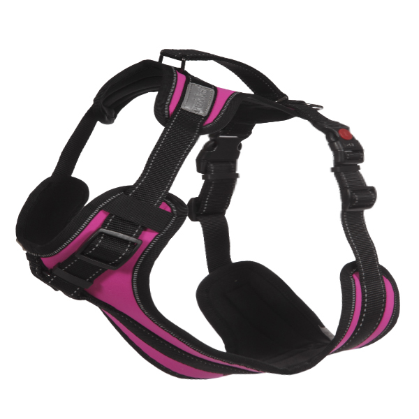 Díky široké hrudní části je pro psa postroj maximálně pohodlný a komfortní i na každodenní nošení. Kromě klasické spony na vodítko má v zadní části i rukojeť, kterou můžete pejska pouze přidržet, když zrovna nechcete připínat vodítko.