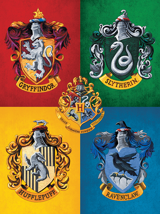 Obraz na plátně Harry Potter: Znaky kolejí - Nebelvír - Zmijozel - Havraspár - Mrzimor (30 x 40 cm)
