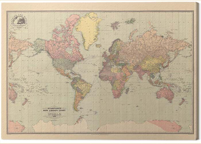 Obraz na plátně Stanfords - New Library Chart of the World, 2 - 80×60 cm