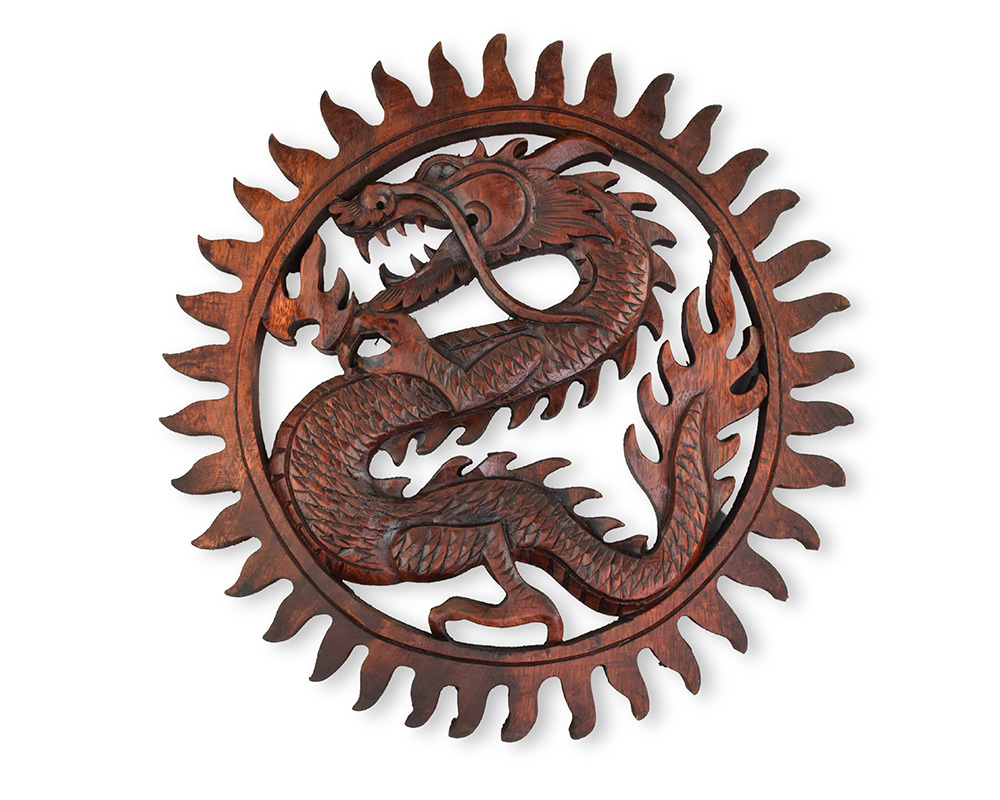 Závěsná dřevěná dekorace Drak tmavá - 30 cm