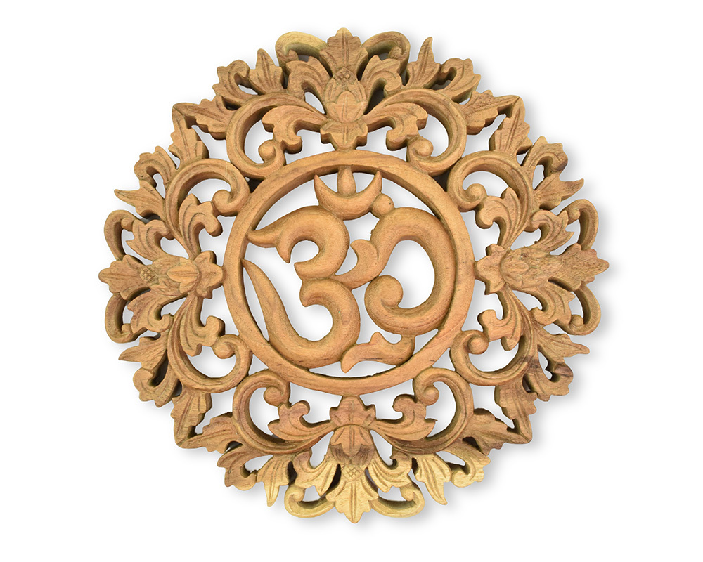 Závěsná dřevěná dekorace Óm světlá - 30 cm
