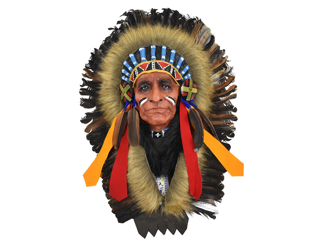 Indiánští náčelníci byli vůdci a moudří rádci svých kmenů, kteří nesli odpovědnost za rozhodování, ochranu a blaho komunity. Jejich autorita vycházela z osobní ctnosti, zkušeností a schopnosti vést, spíše než z dědičného práva. Často byli vnímáni jako strážci tradic, duchovní vůdci a zprostředkovatelé mezi lidmi a přírodou. Náčelníci byli respektováni pro svou statečnost, spravedlnost a schopnost vyjednávat s ostatními kmeny nebo kolonizátory, a jejich role byla klíčová pro udržení harmonie a rovnováhy v kmeni.S dekorací je dodáván háček pro zavěšení na zeď.