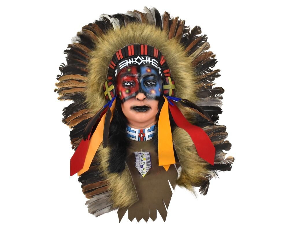 Indiánští náčelníci byli vůdci a moudří rádci svých kmenů, kteří nesli odpovědnost za rozhodování, ochranu a blaho komunity. Jejich autorita vycházela z osobní ctnosti, zkušeností a schopnosti vést, spíše než z dědičného práva. Často byli vnímáni jako strážci tradic, duchovní vůdci a zprostředkovatelé mezi lidmi a přírodou. Náčelníci byli respektováni pro svou statečnost, spravedlnost a schopnost vyjednávat s ostatními kmeny nebo kolonizátory, a jejich role byla klíčová pro udržení harmonie a rovnováhy v kmeni.S dekorací je dodáván háček pro zavěšení na zeď.