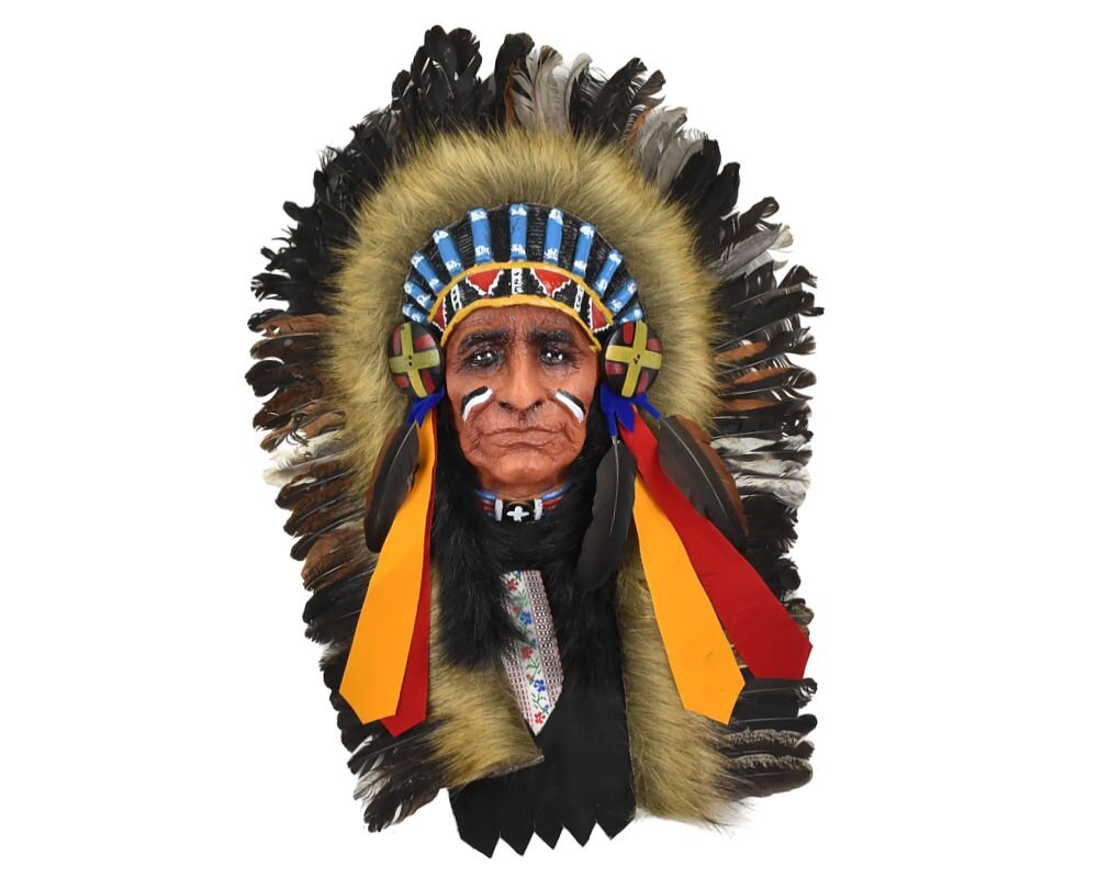 Indiánští náčelníci byli vůdci a moudří rádci svých kmenů, kteří nesli odpovědnost za rozhodování, ochranu a blaho komunity. Jejich autorita vycházela z osobní ctnosti, zkušeností a schopnosti vést, spíše než z dědičného práva. Často byli vnímáni jako strážci tradic, duchovní vůdci a zprostředkovatelé mezi lidmi a přírodou. Náčelníci byli respektováni pro svou statečnost, spravedlnost a schopnost vyjednávat s ostatními kmeny nebo kolonizátory, a jejich role byla klíčová pro udržení harmonie a rovnováhy v kmeni.S dekorací je dodáván háček pro zavěšení na zeď.