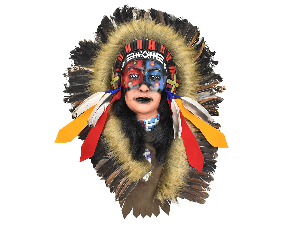 Indiánští náčelníci byli vůdci a moudří rádci svých kmenů, kteří nesli odpovědnost za rozhodování, ochranu a blaho komunity. Jejich autorita vycházela z osobní ctnosti, zkušeností a schopnosti vést, spíše než z dědičného práva. Často byli vnímáni jako strážci tradic, duchovní vůdci a zprostředkovatelé mezi lidmi a přírodou. Náčelníci byli respektováni pro svou statečnost, spravedlnost a schopnost vyjednávat s ostatními kmeny nebo kolonizátory, a jejich role byla klíčová pro udržení harmonie a rovnováhy v kmeni.S dekorací je dodáván háček pro zavěšení na zeď.