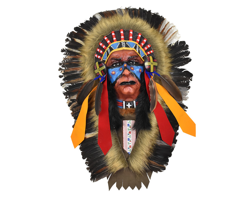 Indiánští náčelníci byli vůdci a moudří rádci svých kmenů, kteří nesli odpovědnost za rozhodování, ochranu a blaho komunity. Jejich autorita vycházela z osobní ctnosti, zkušeností a schopnosti vést, spíše než z dědičného práva. Často byli vnímáni jako strážci tradic, duchovní vůdci a zprostředkovatelé mezi lidmi a přírodou. Náčelníci byli respektováni pro svou statečnost, spravedlnost a schopnost vyjednávat s ostatními kmeny nebo kolonizátory, a jejich role byla klíčová pro udržení harmonie a rovnováhy v kmeni.S dekorací je dodáván háček pro zavěšení na zeď.