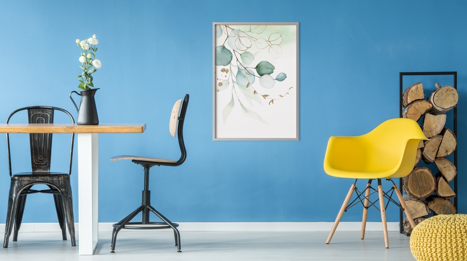 Obraz v rámu Větvička Eukalyptu různé rozměry hliníkový rám stříbrná