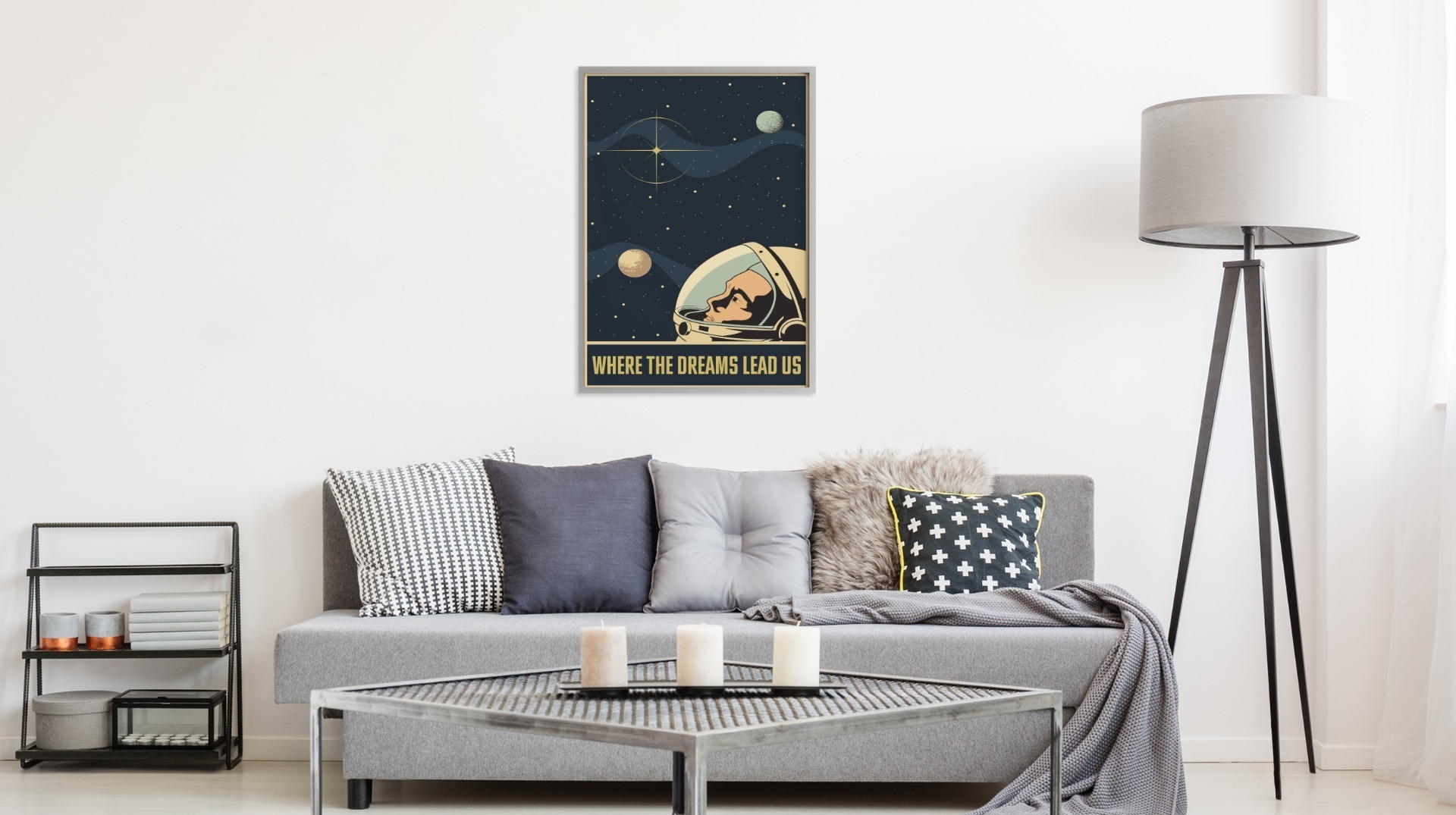 Obraz v rámu Astronaut Ve Vesmíru Ve Stylu Vintage různé rozměry hliníkový rám stříbrná