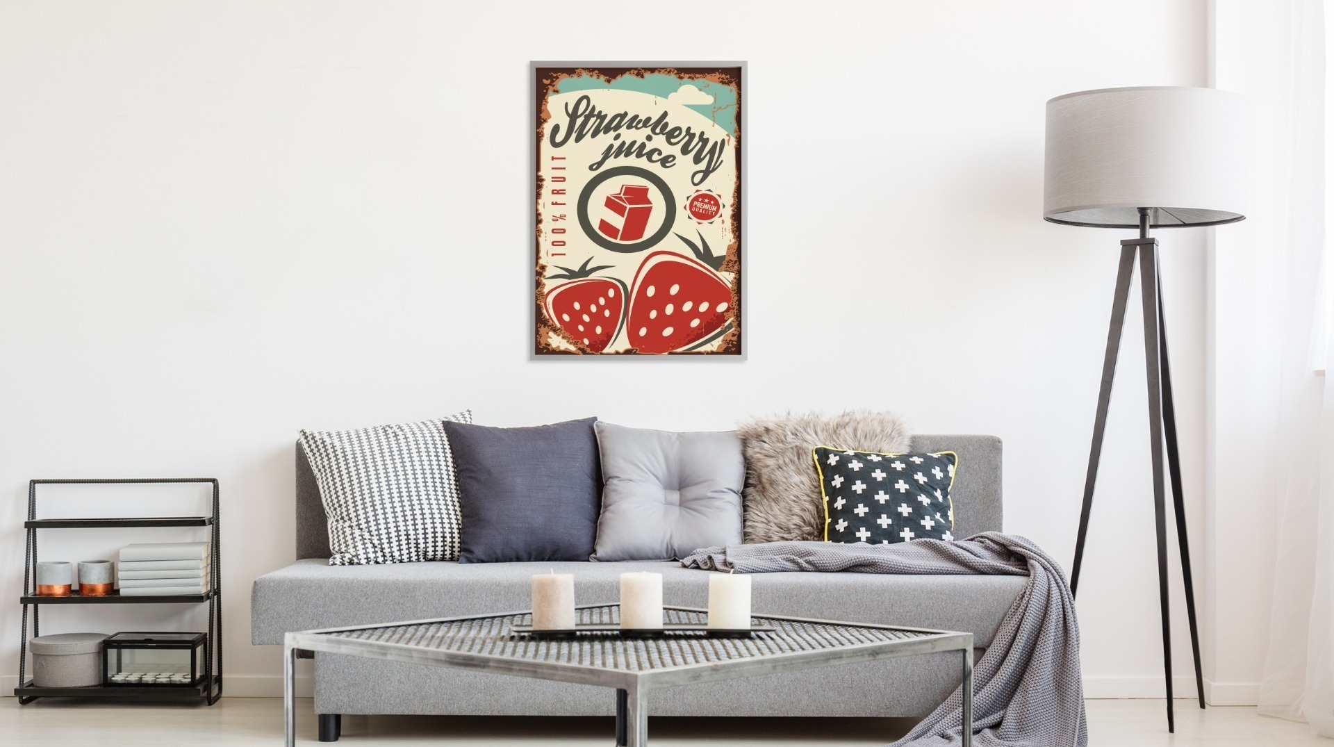 Obraz v rámu Vintage Jahodový Džus různé rozměry hliníkový rám černá