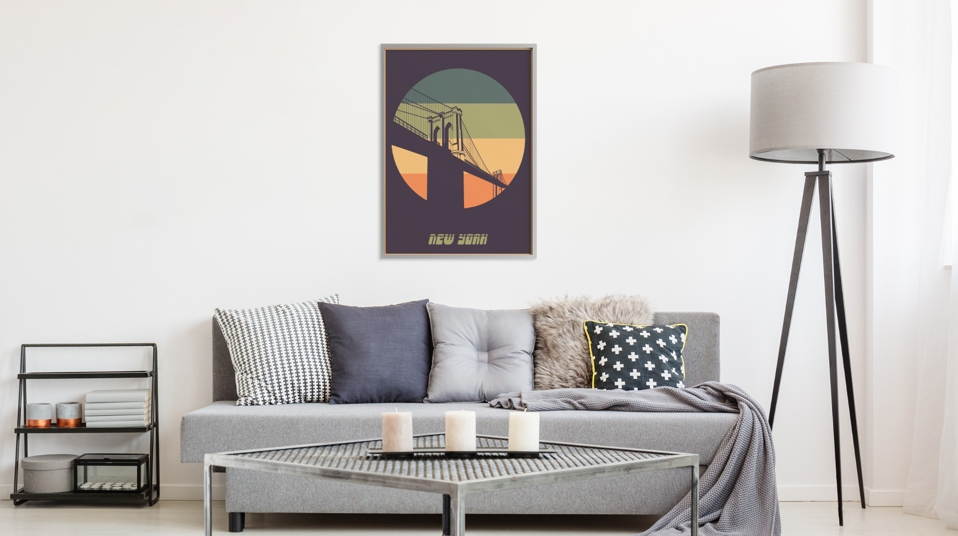 Obraz v rámu Vintage Brooklyn Bridge různé rozměry hliníkový rám stříbrná