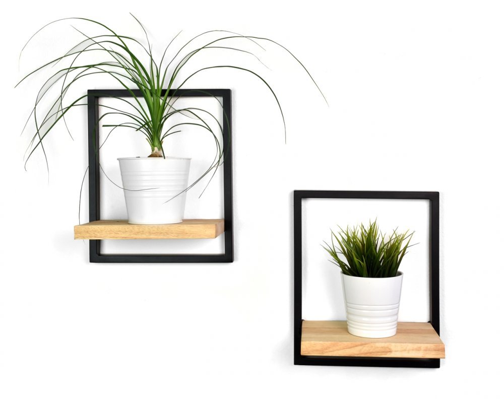 Sada dvou kusů dřevěných nástěnných polic s kovovým rámem Everly. Minimalistický design potěší všechny, kteří preferují jednoduchost.Výrobek je produktem naší firmy a dřevo použité na výrobu polic pochází z rámů, ve kterých jsou baleny dekorace a nábytek, který dovážíme z Thajska. Použité dřevo je tudíž 100% recyklované.Ze zadní strany rámů jsou otvory pro zavěšení na šrouby či háky.Rozměry (V x Š x H):35 x 28 x 24,5 cm - 1,8 kgPoužité dřevo: smrk
