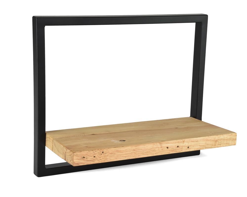 Dřevěná nástěnná police s kovovým rámem Mileson 30 x 36 cm