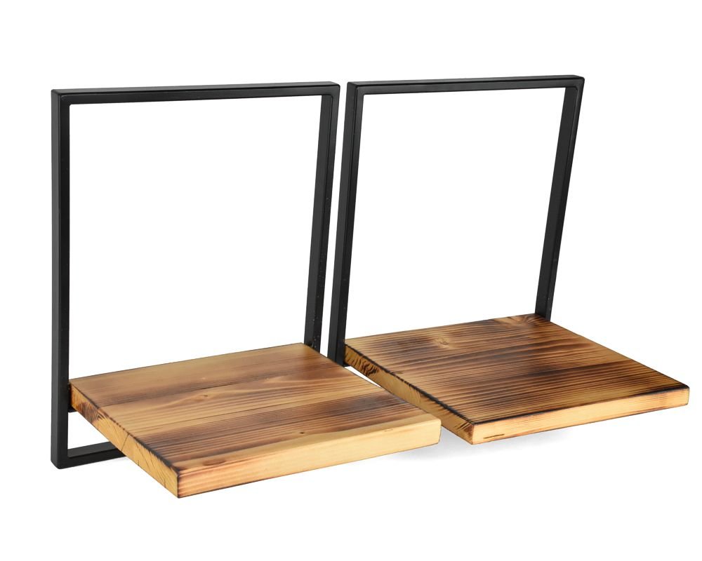 Sada dřevěných nástěných polic s kovovým rámem Everly 2 ks - opálené dřevo