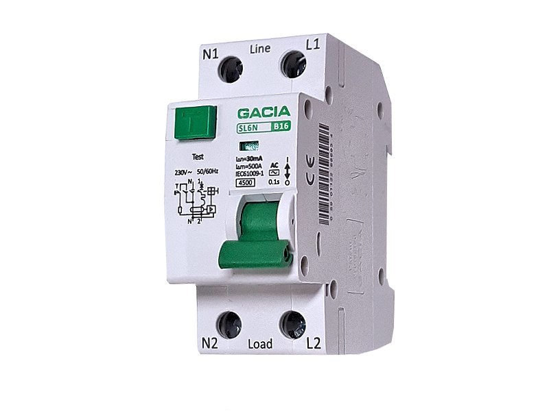 Proudový chránič SL6N typu ACs nadproudovou ochranou RCBO (chráničojistič) pro obvody střídavého proudu 50/60 Hz se jmenovitým napětím 230 V a spínacím proudem 10A. Vyhovuje normám IEC/EN61009-1.