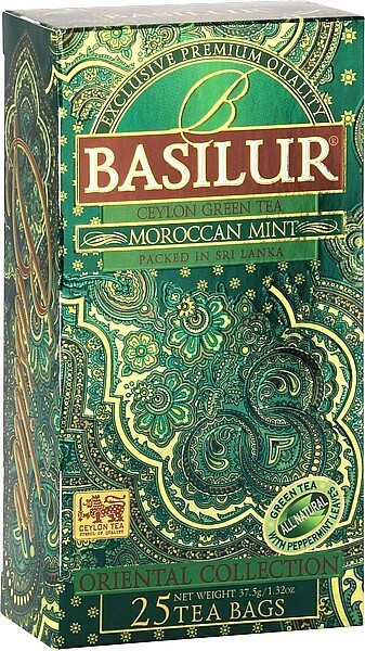 Čaj dokáže zahřát jak tělo, tak smysly a orientální řada vzdává hold právě jeho schopnosti navodit uvolnění a pohodu. Osvěžující zelený čaj GTFGS Maroccan Mint s lahodnou mátou. Dodá energii po celý den a pročistí chuťovou paletu před každým chodem. Zelený čaj, porcovaný v nepřebalových sáčcíchSložení: zelený čaj GTFGS, máta 8 %, přírodní aroma (marocká máta) Nadmořská výška sběru čaje: High GrownHmotnost: 37,5g (25x1,5g)Návod na přípravu: 1 sáček na 250ml šálek, zalít vodou 80°C, louhovat 2-3 minutyVýrobce: Basilur Tea Export (PVT) LTD. Baleno na Srí Lance. Dovozce pro ČR: MIX-TEE velkoobchod, s.r.o., Masarykova 235, 250 88 Čelákovice, Česká republikaSkladovat v suchu a chladu.