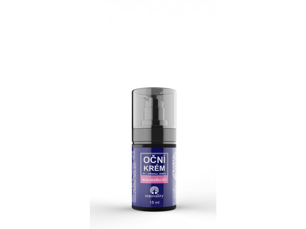Renovality rozjasňující oční krém unavené oční okolí okamžitě osvěží, pomůže zmírnit otoky a známky únavy díky výtažku z Terminalia Arjuna (Look Oléoactif®). Kyselina hyaluronová spolu s nedráždivou formou vitamínu A napomáhá udržet optimální hydrataci a omezuje tvorbu vrásek. Moringový olej spolu s olejem z vlašských ořechů dokonale vyživí jemnou pleť v okolí očí.