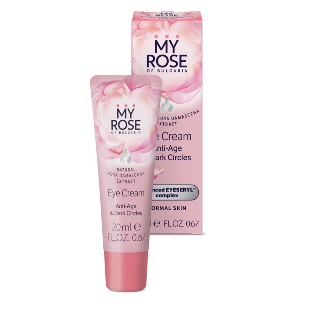 Oční krém My Rose of Bulgaria poskytuje dokonalou péči pro oční okolí, vyhlazuje, hydratuje a zlepšuje pružnost pokožky. Speciální peptid komplex EYESERYL® viditelně redukuje oční váčky a tmavé kruhy. Přidaná kyselina hyaluronová hloubkově hydratuje a vyhlazuje jemné vrásky. Receptura s bambuckým máslem a vitamínem E vyživují pokožku a dodávají jí pružnost a hebkost. Krém má příjemnou sametovou texturu, která se rychle vstřebává a nezanechává mastný film.