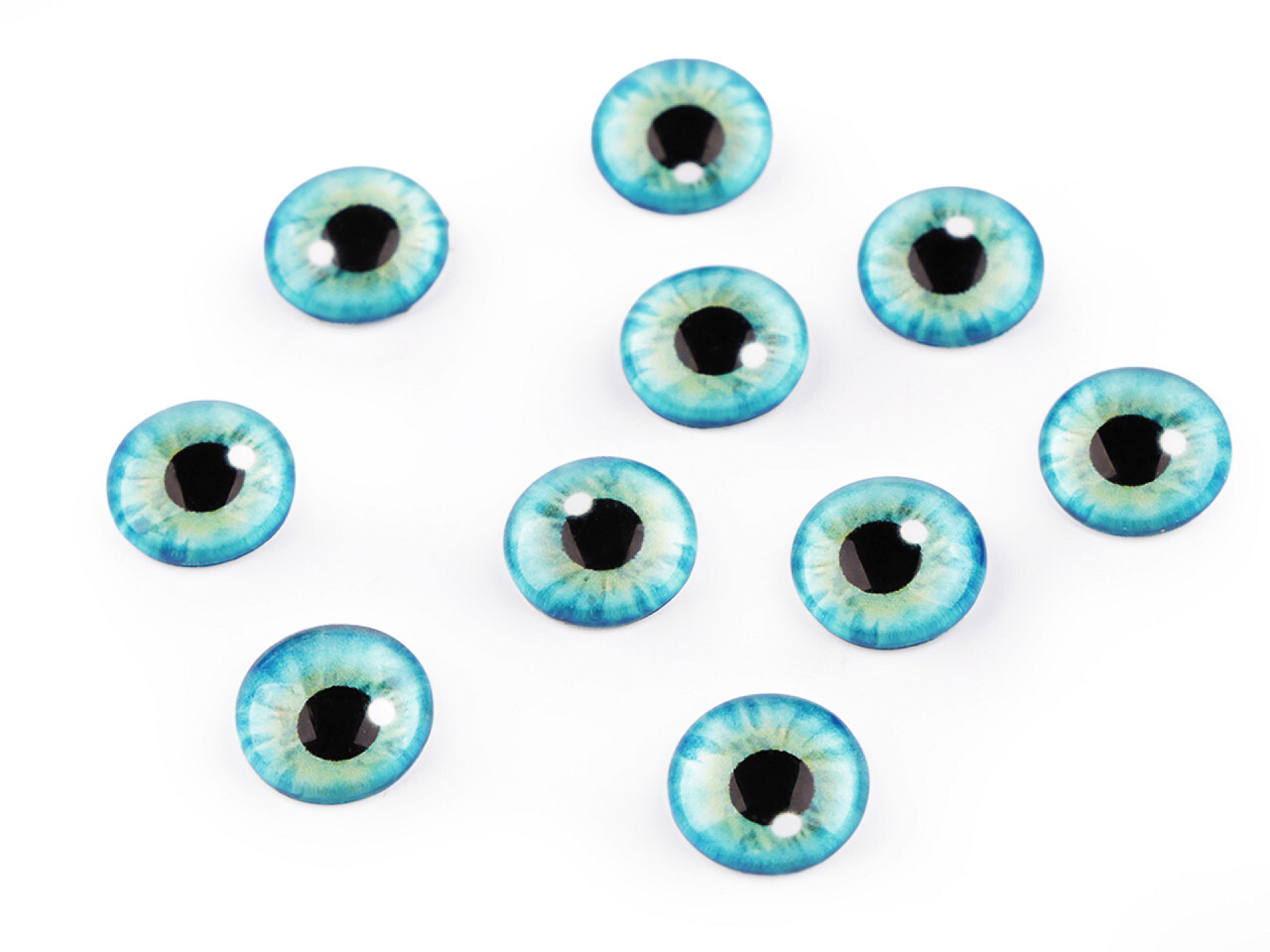 Skleněné oči k nalepení Ø10 a 12 mm - 10 ks - 8 (12 mm) tyrkysová