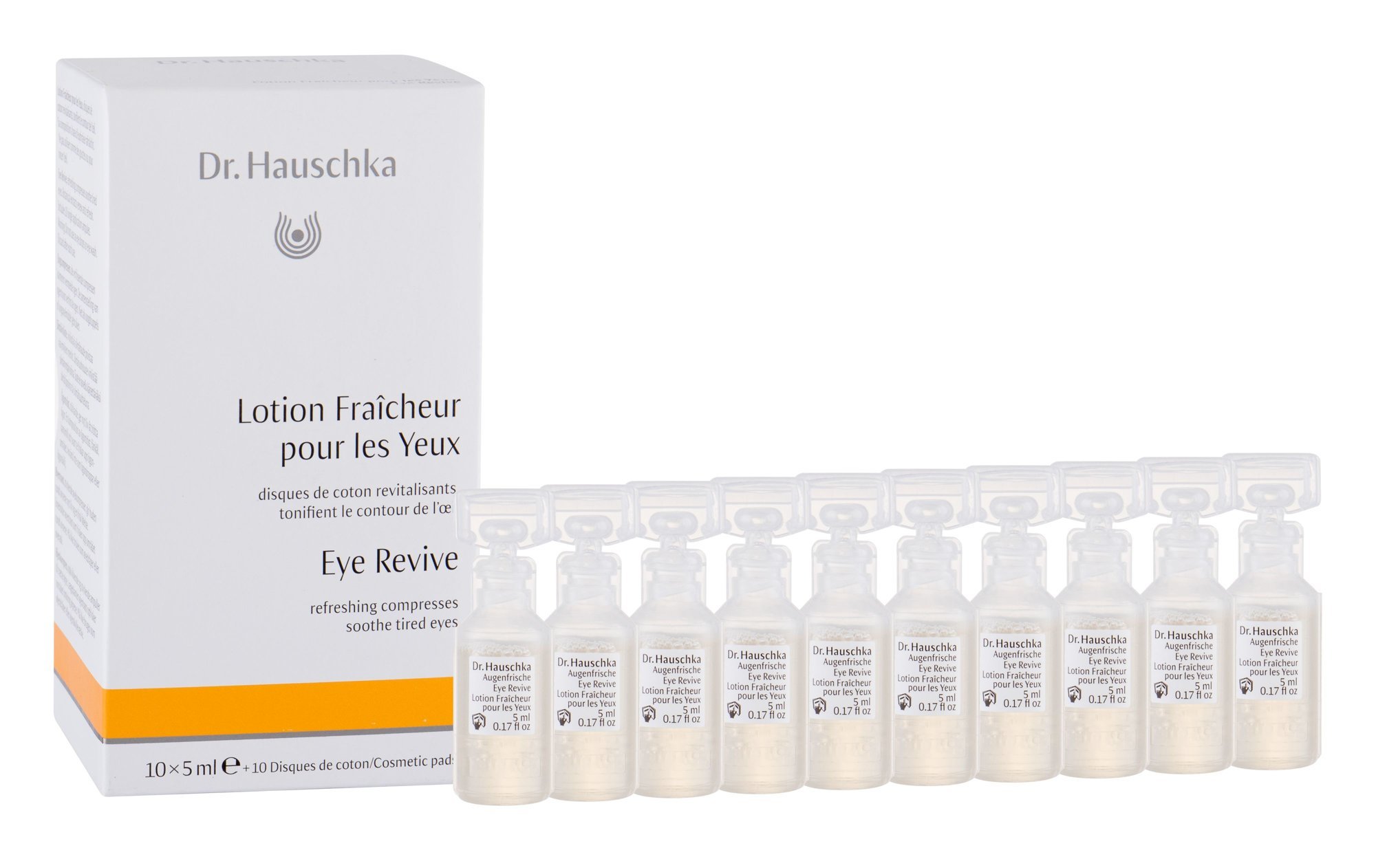 Řekněte sbohem unavenému vzhledu! **Dr. Hauschka Eye Revive** je oční sérum, které optimálně formuluje oční okolí a snižuje výskyt otoků. ### Rozjasněte svůj vzhled s očním sérem Dr. Hauschka! * zklidňuje pokožku, * pomáhá zbavit se napjatých nebo začervenalých očí. ### Jak správně sérum používat a dosáhnout tak nejlepších výsledků? Rozdělte jeden kosmetický polštářek na dva a důkladně do nich nasajte sérum z jedné ampulky. Polštářky umístěte na zavřená oční víčka a nechte 10 minut pracovat.