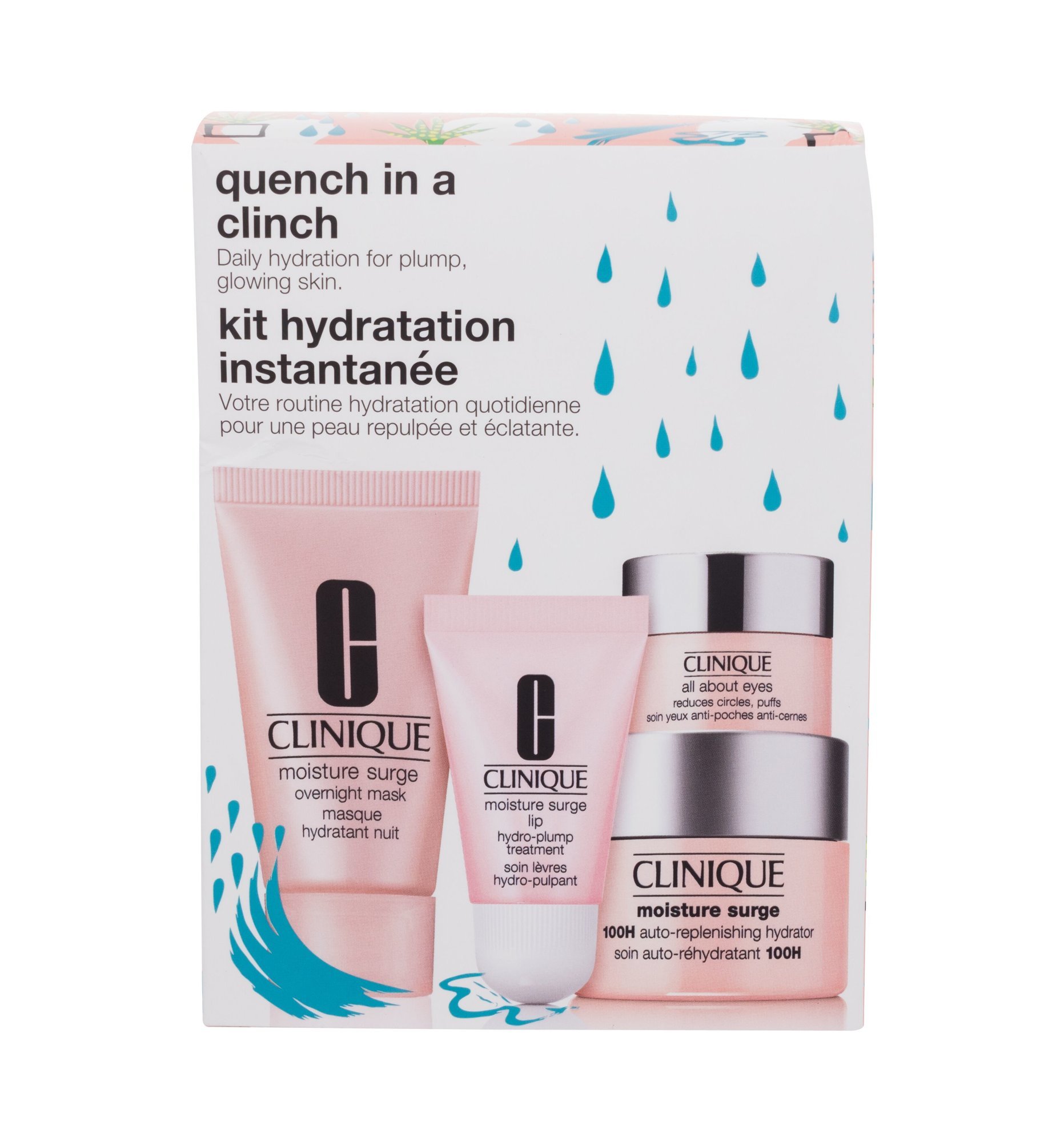 Clinique Moisture Surge denní pleťový krém Moisture Surge 100H Auto-Replenishing Hydrator 15 ml + pleťová maska Moisture Surge Overnight Mask 30 ml + péče na rty Moisture Surge Lip Hydro-Plump Treatment 7 ml + oční krém All About Eyes 5 ml