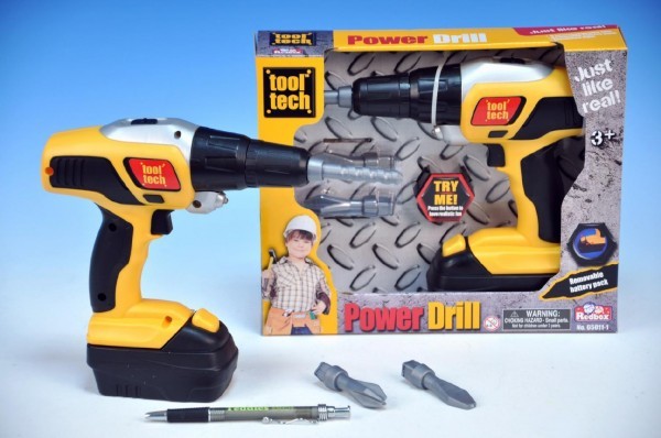 Aku Vrtačka nářadí plast 26cm na baterie se zvukem se světlem v krabici