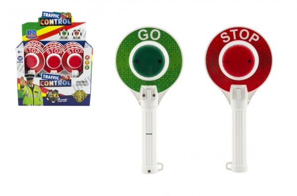 Policejní svítící "plácačka" z plastu se světlem pro všechny malé policisty.Zastavovací terč učí děti základům silničního provozu. Přední strana terče svítí červeně a druhá zeleně. Vhodné od 3 let.