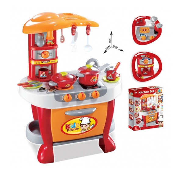 Dětská kuchyňka G21 v oranžové barvě nadchne každého malého kuchaře. Kuchyňka má troubu, dvě plotýnky na vaření, dřez, odkládací plochu, věšák na kuchyňské náčiní a mnoho dalšího příslušenství. V balení najdete 31 kusů nádobí a jiného příslušenství pro vaření a pečení.