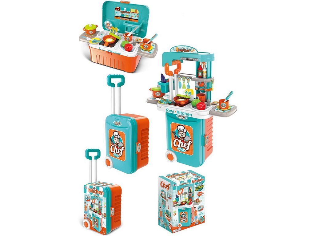 Kuchyň s příslušenstvím v kufru, na baterie, 24x38x16cm