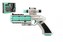 Krásná pistol, promítá obrázek bojovníka, bliká, dělá zvuk. Syn chtěl už na náboje a nakonec prohlásil, že tato je nejlepší na světě.